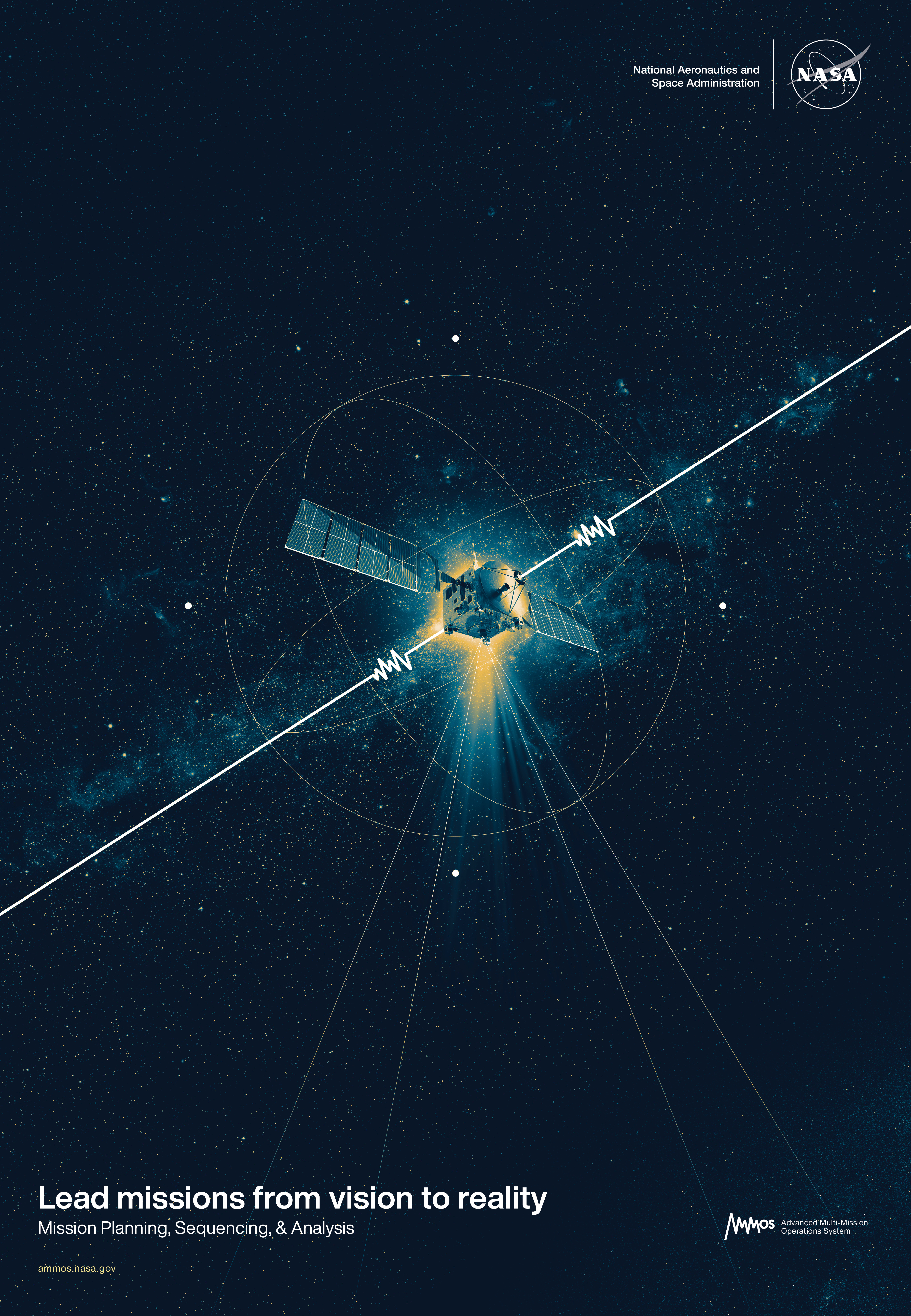 Explore the AMMOS AMMOS Home Functions Mission Design and Navigation Mission Planning, Sequencing, and Analysis Instrument Data System Mission Control System Security About Contact Us Downloads Product List Digital Posters AMMOS Posters AMMOS: Software to Empower Space Exploration Credit: NASA/JPL-Caltech (2026) AMMOS Poster Click the arrow to download jpg format. AMMOS Misson Design and Navigation: Explore the path best traveled Credit: NASA/JPL-Caltech (2026) AMMOS MDN Poster Click the arrow to download jpg format. AMMOS Mission Plannying, Sequencing, & Analysis: Lead missions from vision to reality Credit: NASA/JPL-Caltech (2026) AMMOS MPSA Poster Click the arrow to download jpg format. AMMOS Instrument Data System: Discover other worlds Credit: NASA/JPL-Caltech (2026) AMMOS IDS Poster Click the arrow to download jpg format. AMMOS Mission Control System: Connect to spacecraft across the universe Credit: NASA/JPL-Caltech (2026) AMMOS MCS Poster Click the arrow to download jpg format.